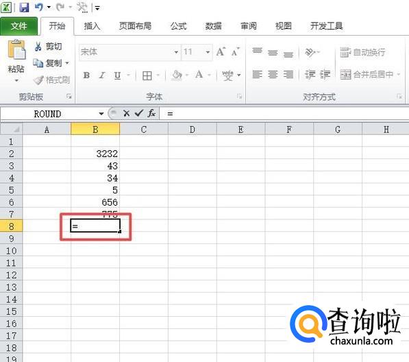 之后我们选中图示中的单元格,然后我们在单元格中输入=;