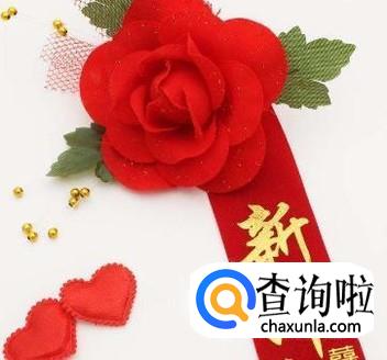 结婚当天新郎新娘伴郎伴娘都要佩戴胸花,胸花上标注着各自的身份,以便亲友们更好的认识新郎新娘。