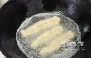 起锅烧一锅油,油热后放入刚才弄的小条炸制,小条会慢慢的膨胀变大,等炸制金黄时就可以捞出来了,这就是油条。