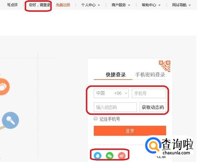 进入官网后,我们点击首页上方登录按钮,然后输入手机号和密码登录,也可以用QQ或者微信、微博等登录(霸王餐只有大众点评会员才能享用)。