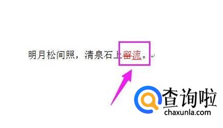 首先,我们先编辑一个word文档,如下图所示。可以看到"明月松间照,清泉石上流"中的"流"被错打成了"留"。接下来,我们要做的就是,利用修订模式对这个字进行修改。