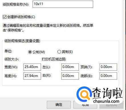 然后进入到打印机的属性后,下面还有创建新纸张规格选择规定的尺寸就好了。