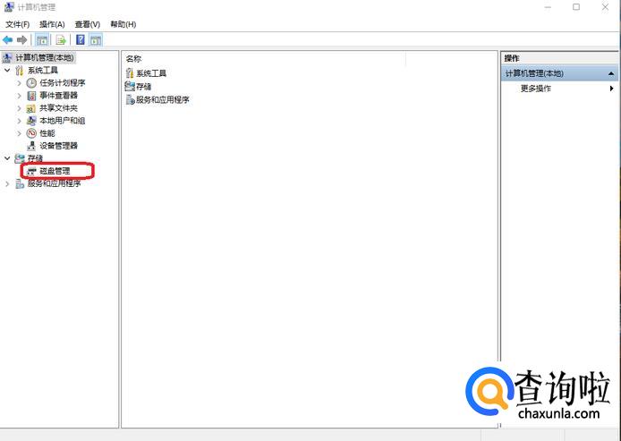 出现计算机管理页面,找到“磁盘管理”,点击它。
