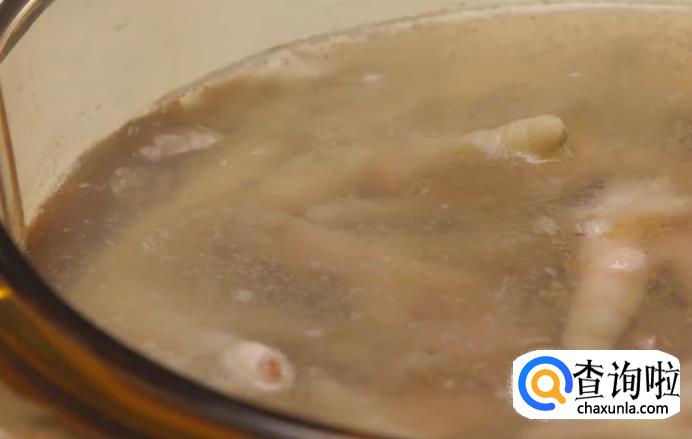之后水沸后放入鸡爪,煮3分钟后捞出,放在厨房纸上晾干。