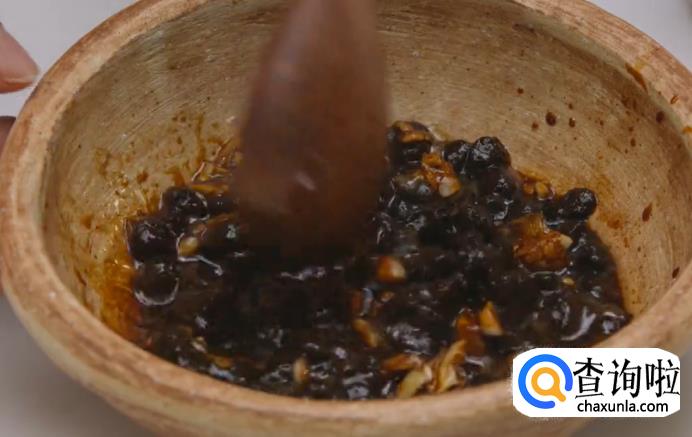 然后取一碗,加入生抽、料酒、蒜蓉、盐、糖、芝麻油、胡椒粉、黑豆豉、淀粉调制成豉汁。