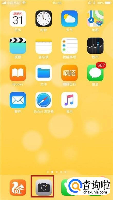 首先在我们的手机桌面上找到相机并点击它,如下图所示。