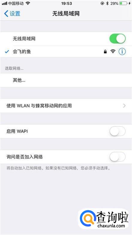 然后开启无线局域网开关,如下图所示。