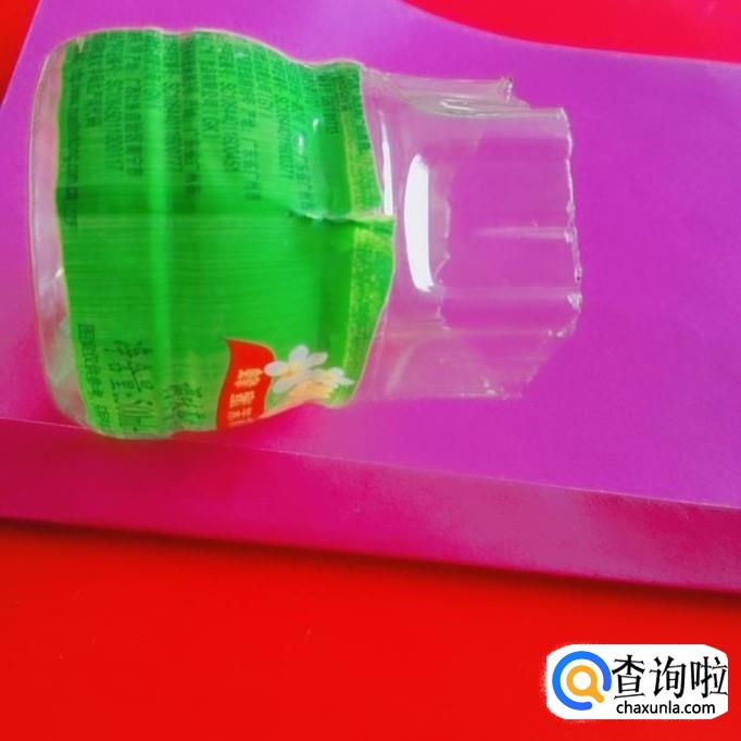 接着用胶纸把彩纸粘在瓶子上。如图所示。
