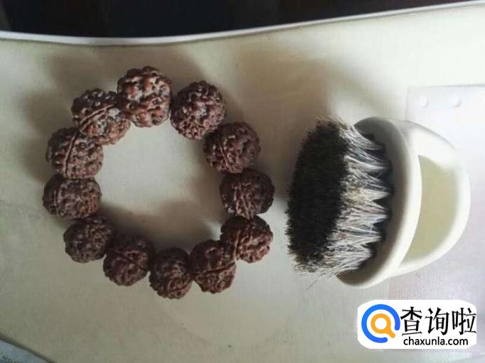 新买来的核桃木手串先不要着急上手盘玩,我们应该是用刷子把核桃手串仔仔细细的刷一刷。