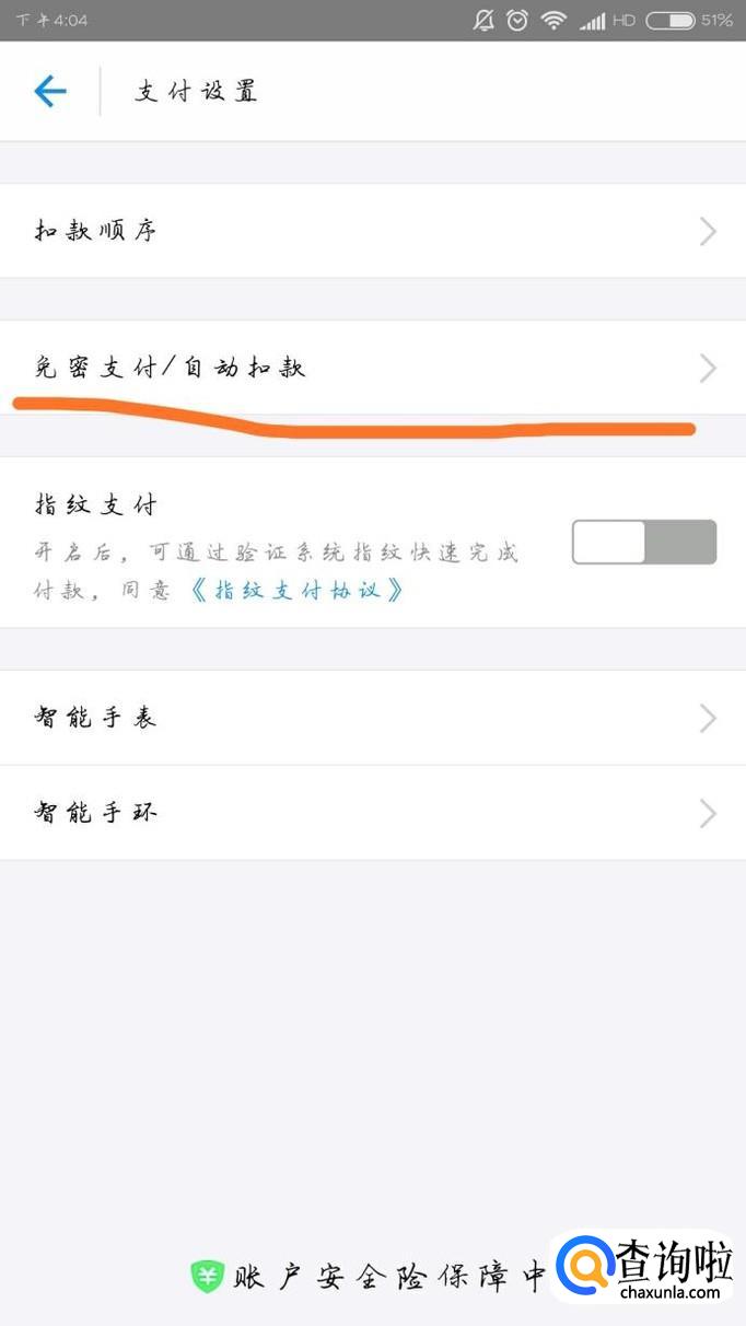 页面会出现如下图的“免密支付/自动支付”点击进入,再进行设置就可以啦