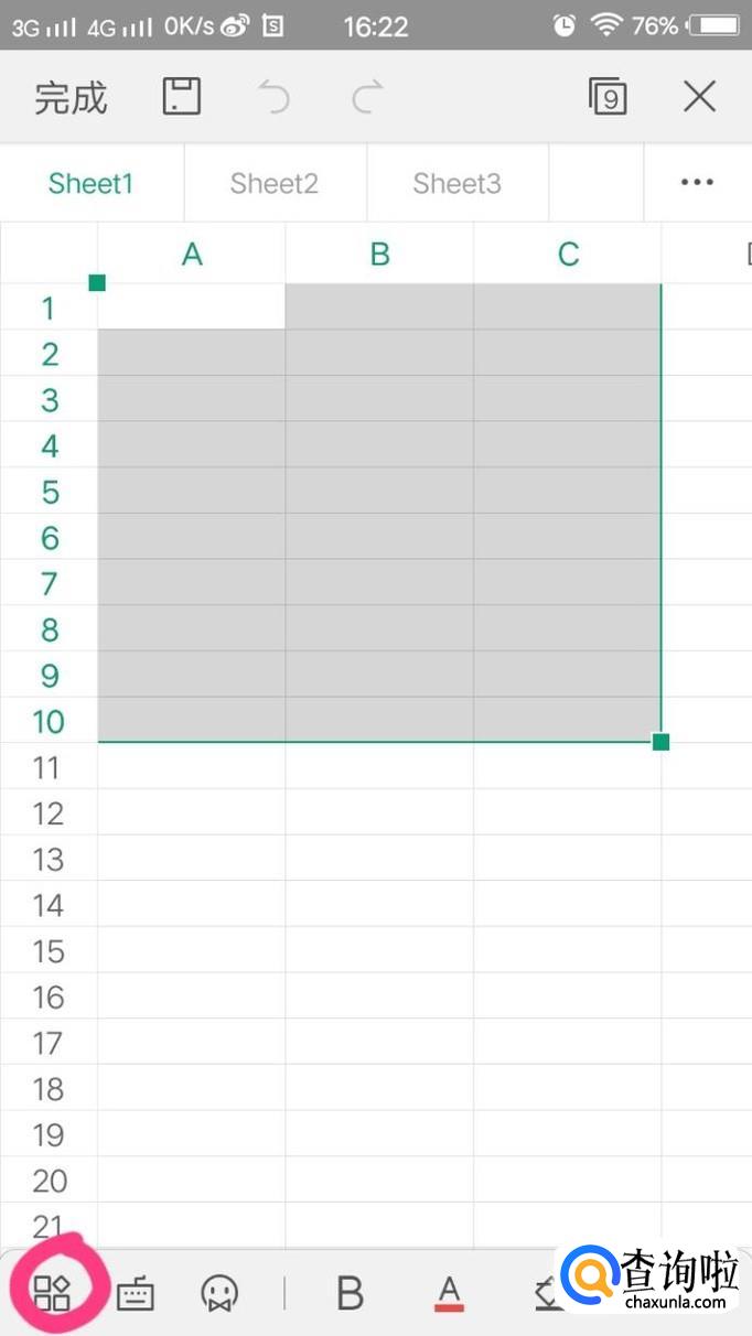 手指拖动单元格选择行数与列数,然后点击左下角那个小方块。