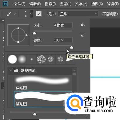 按B键,调出画笔工具,设置画笔大小为4像素;