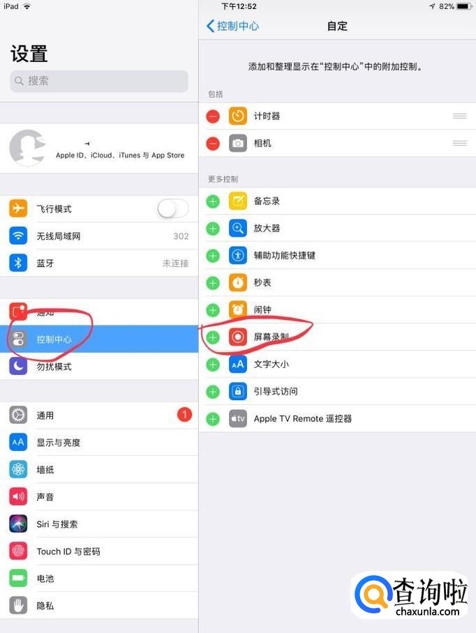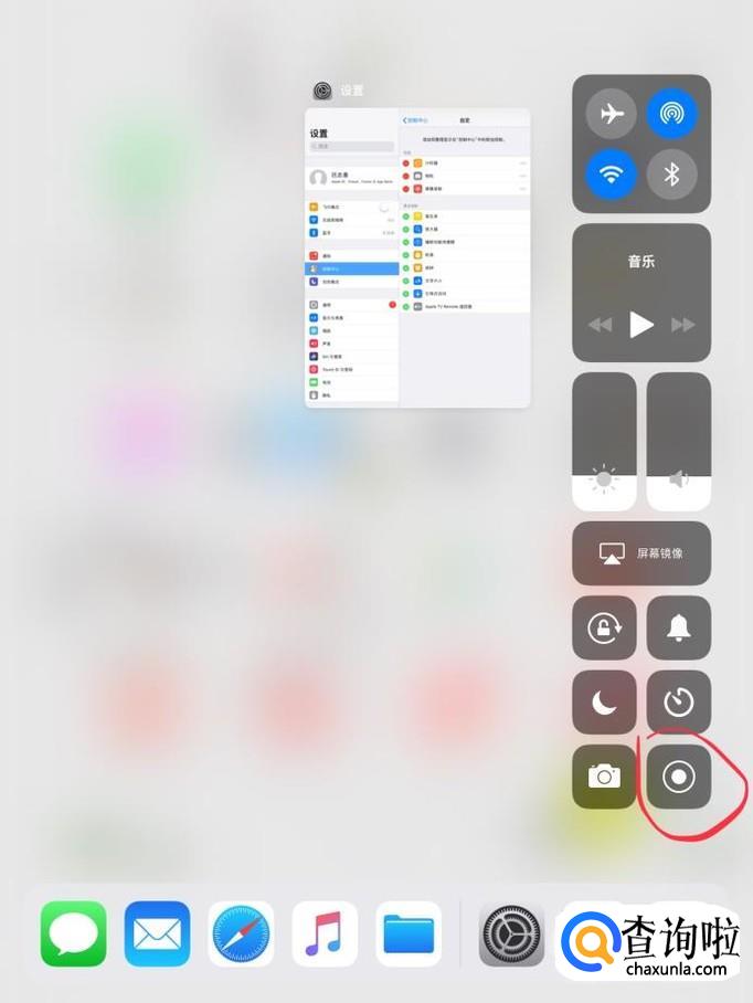 从ipad的下方往上滑,进入控制中心,找到录屏的图标,点击一下,321倒计时就开始录屏。