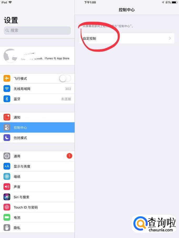 在设置页面内,找到“控制中心”进入“自定控制”,进行下一个步骤操作。