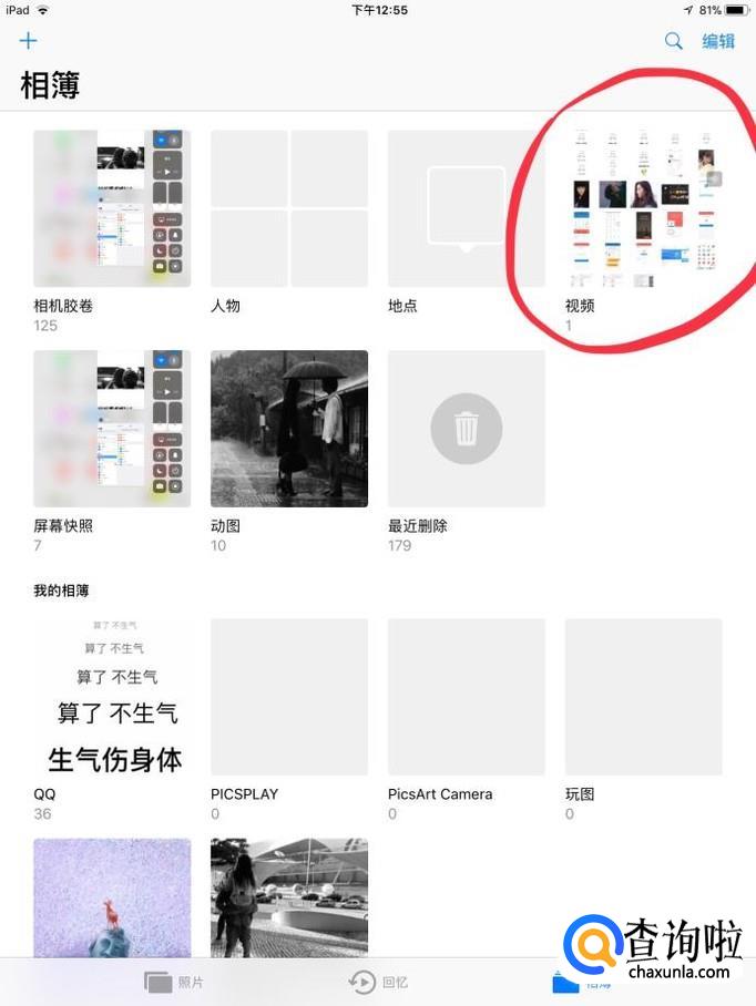 点击ipad自带的“照片”就可以看到我们刚刚录制的视频。