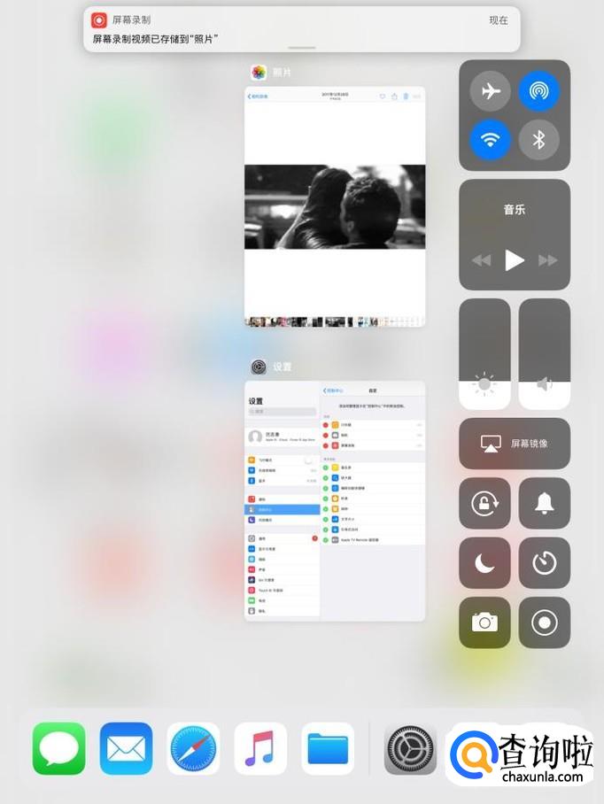 录制好想要的内容后,再次进入控制中心,点击一下屏幕录制的图标,ipad就会有提示说“屏幕录制视频已经储存在照片”。