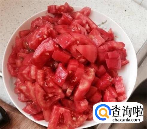 准备好三颗番茄,清洗干净,切成番茄丁。