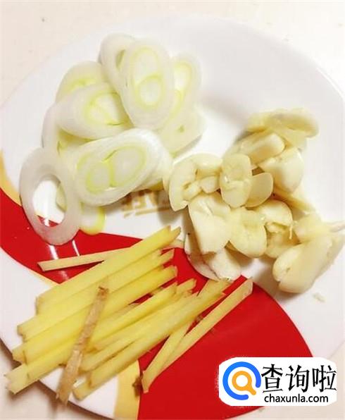 准备好适量的姜、蒜、大葱,姜切成姜丝,蒜头切碎,大葱切断。