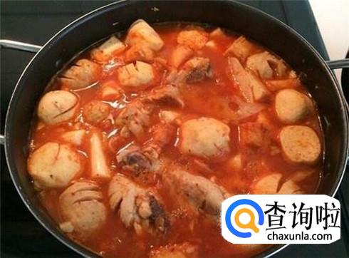然后把火锅丸子倒入锅中,加入适量的清水,大火煮熟,加入适量的盐调味即可。
