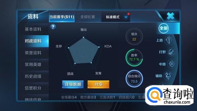 那么它是怎么计算的呢,一局中你的输出,防御,团战,发育,生存,相加后的平均值就是最后的评分。