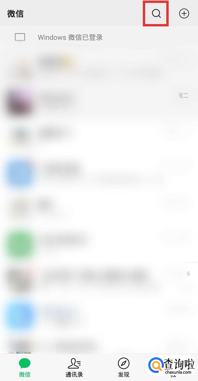 打开微信,点击右上角【搜索】选项。