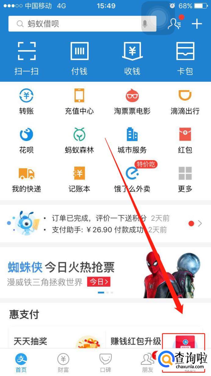 打开后,我们可以看到最上方有一个借呗,点击借呗。
