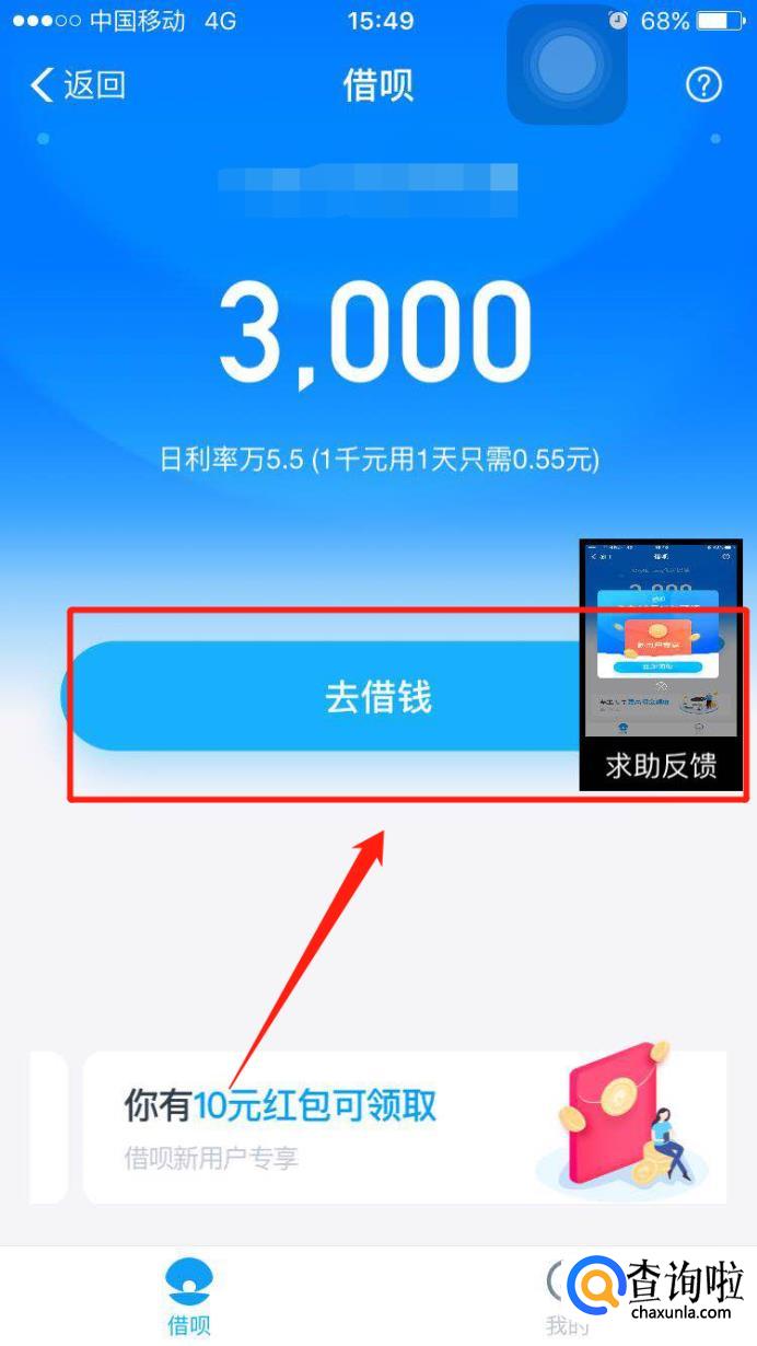 打开后,会显示你最多能贷款的金额,看到以后点击去借钱。