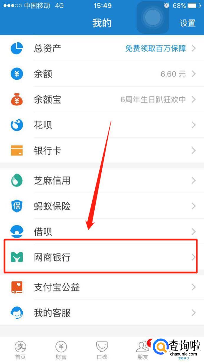 在该页中找到网商银行的选项。