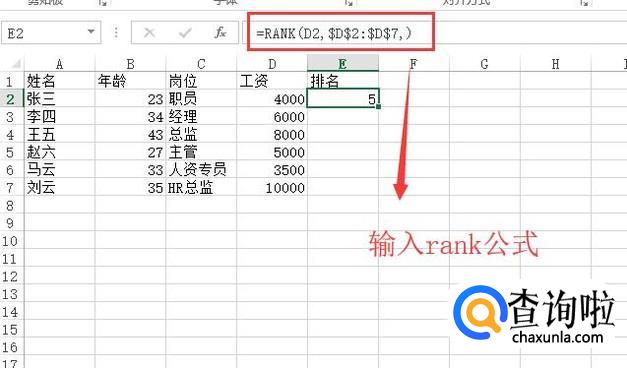 然后新建一个排序列,在第二个单元格输入如下图所示的Rank公式