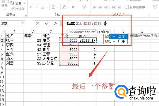 最后我们还可以更改RANK公式的排序方式,只需要变更第三个参数的值即可,如下图所示