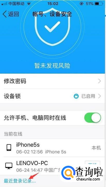 点击以下历史登录我们就可以看到qq的历史登录设备。