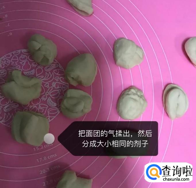 然后把面团分成大小相同的剂子,如下图显示。