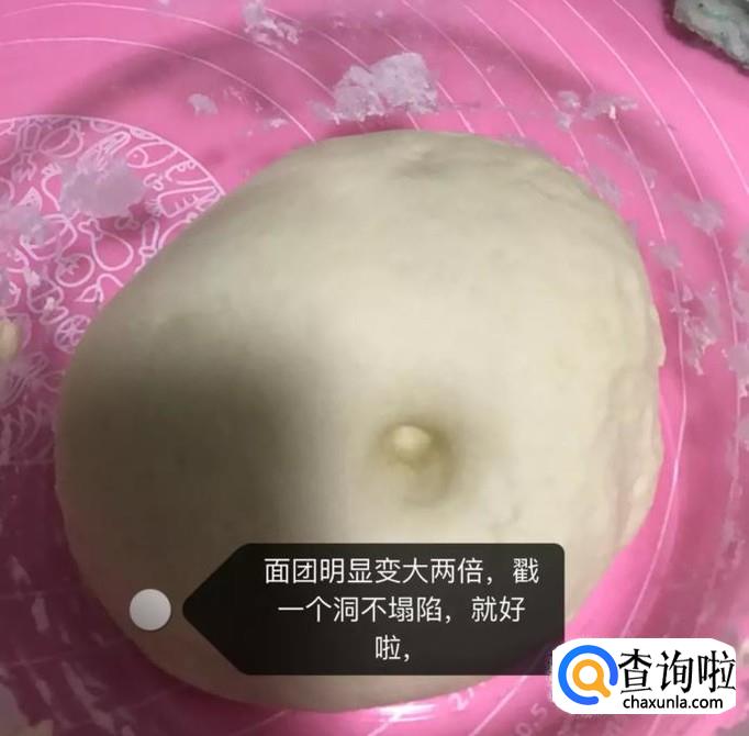 接着用手指按压面团,如果洞不会塌陷,那么就说明我们的面团发酵好了。