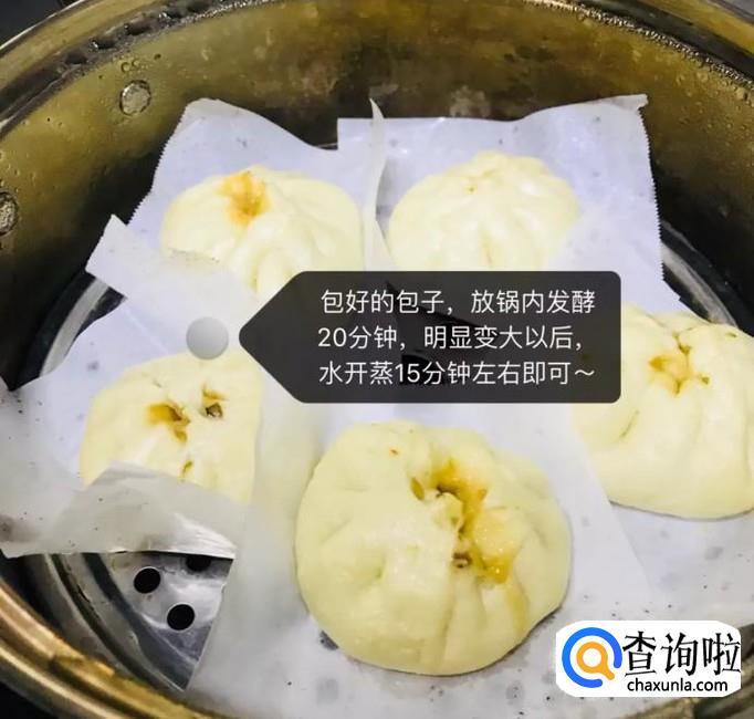 接着把包好的包子放到锅中继续发酵20分钟,明显变大以后,开火蒸15分钟左右就可以了。