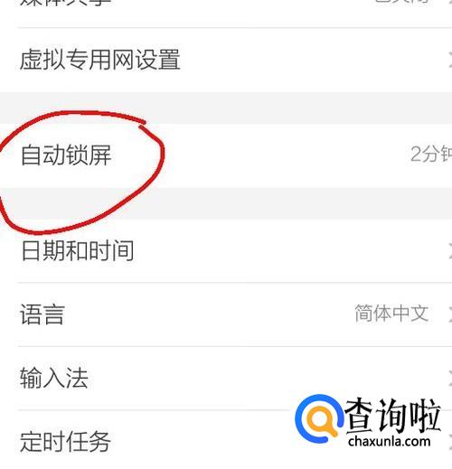 进入“更多设置”页面之后,找到并点击选择“自动锁屏”选项