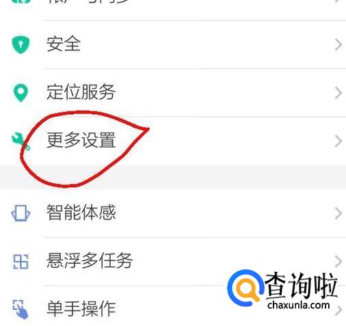 进入“设置”界面之后,找到并点击进入选项“更多设置”
