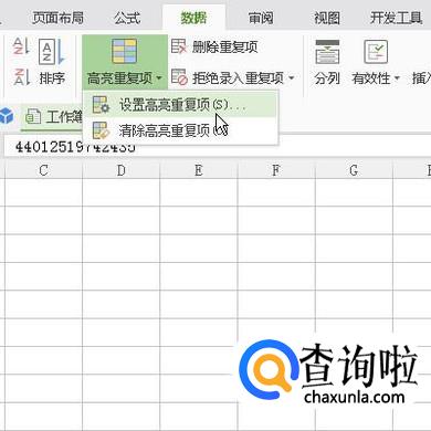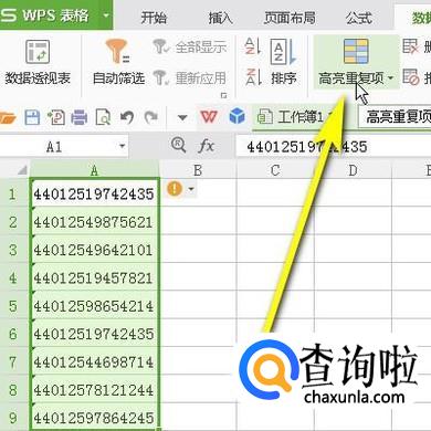 在展开的内容中,然后,找到并点击:高亮重复项
