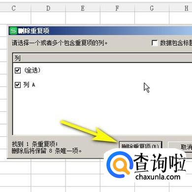 即时弹出一个对话框,我们点击:删除重复项;那么,重复项即被删除。