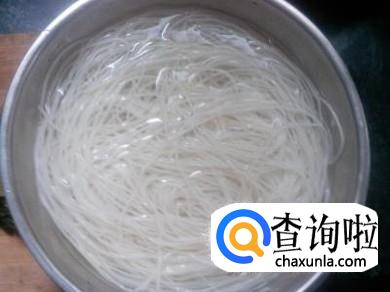 米线都是硬硬的,所以要提前放在温水中泡六到七分钟,否则很难煮熟。