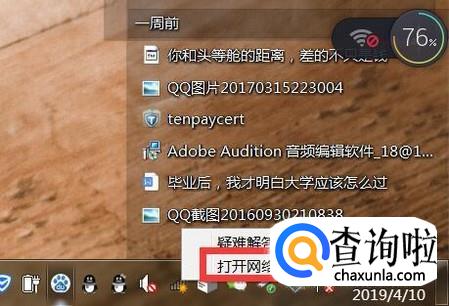首先把鼠标放在wifi位置,右击鼠标,点击打开网络和共享中心。
