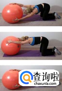 1.双膝跪地,将双手放在平衡球两侧。降低躯干,直到身体与地面平行。