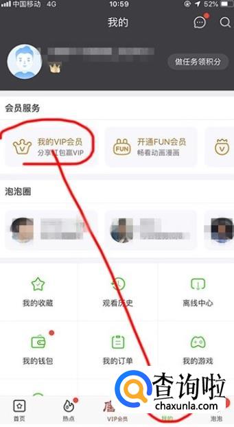 进入视频主页面后,点击下面的“我的”选项。然后找到“会员服务”下的“我的VIP会员”,点击进入。