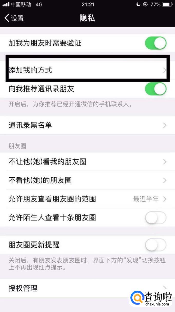 在这个界面我们可以添加别人可以添加我为好友的方式。