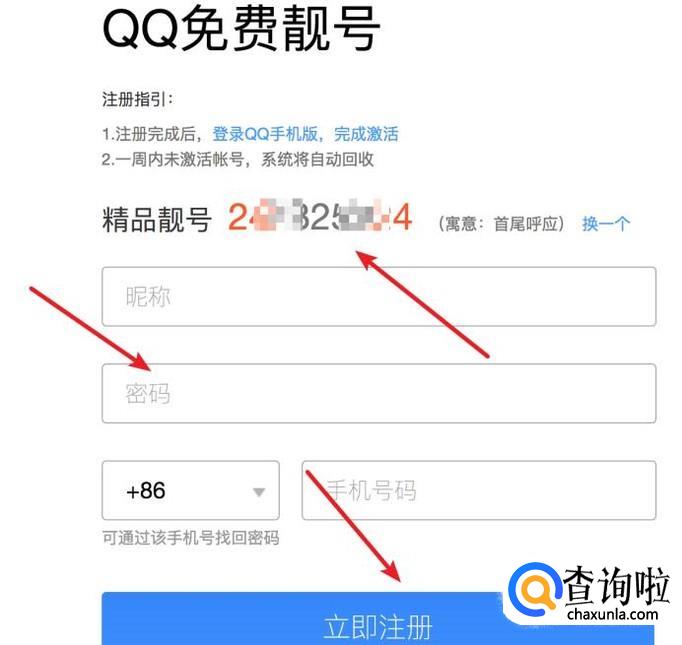 然后我们就可以得到一个9位的靓号了,而且是免费的。填入信息,点击注册,这个号码就属于你了。