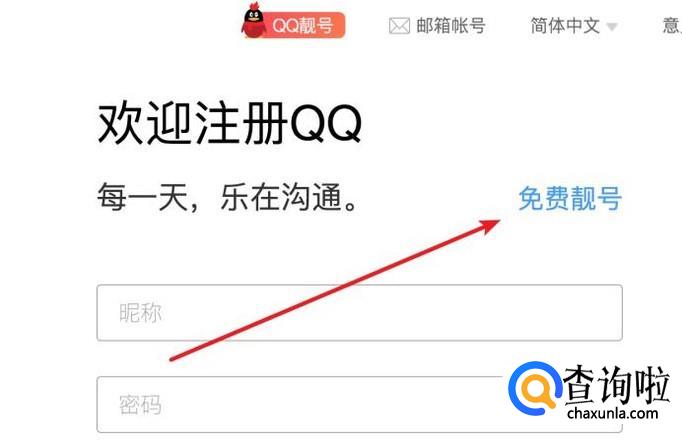 打开了官方的注册页面后,可以看到有一个‘免费靓号’的链接,点击打开。