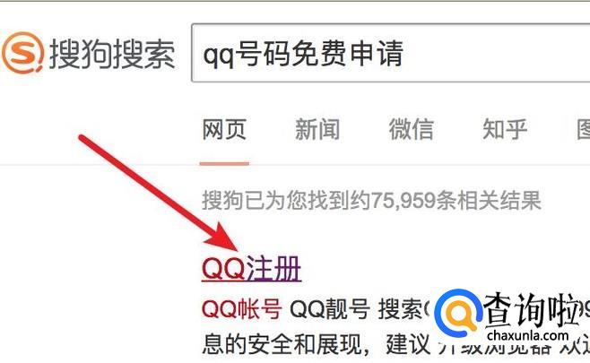 首先打开搜狗搜索,输入‘qq号码免费申请’,得到结果后,点击打开第一个页面。