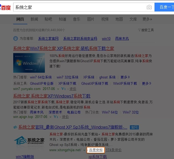 2、回到搜索引擎搜索界面,找到那个网页,并点击其快照。