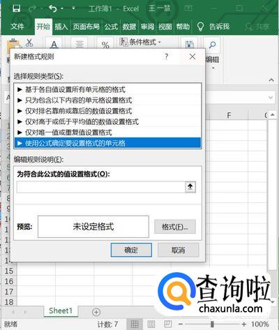 点击新建规则后,在选择规则类型正方选择使用公式确定要设置格式的单元格。