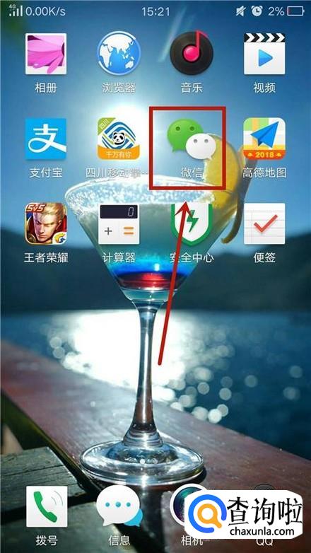 然后在我们的手机桌面上找到微信并点击它,如下图所示