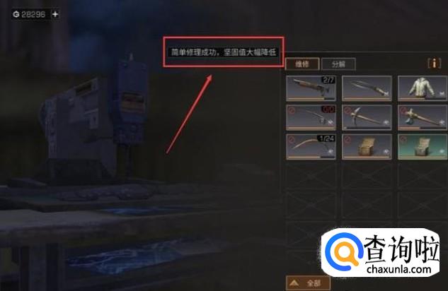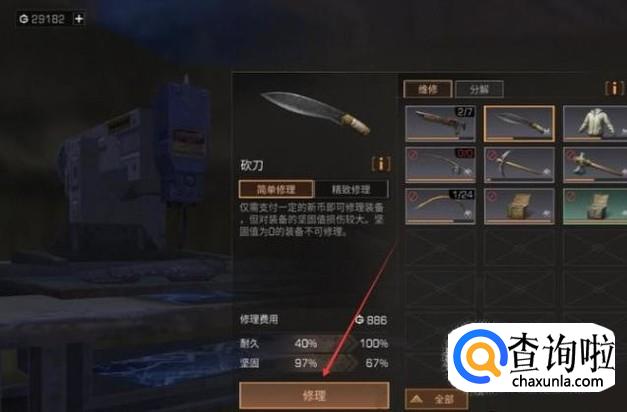 之后再点击【修理】功能,这样武器就能修理成功了。